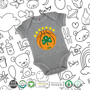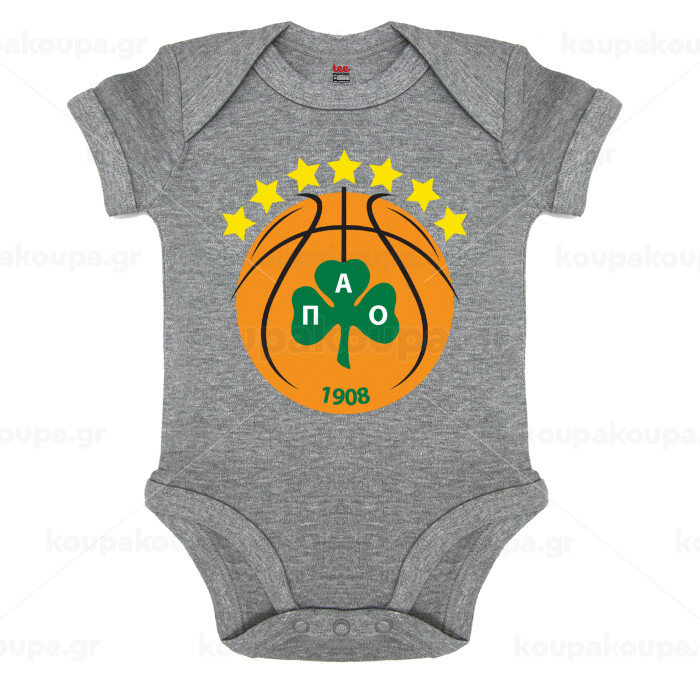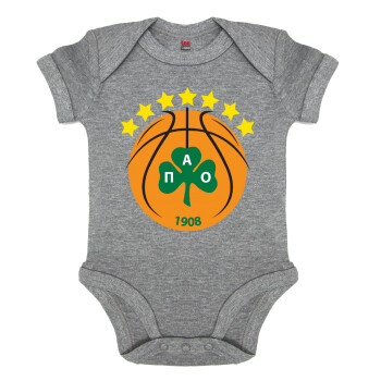 PAO BC, Βρεφικό φορμάκι μωρού, 0-18 μηνών, ΓΚΡΙ ΜΕΛΑΝΖΕ, 100% Organic Cotton, κοντομάνικο