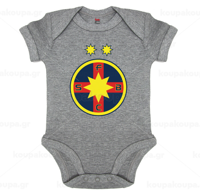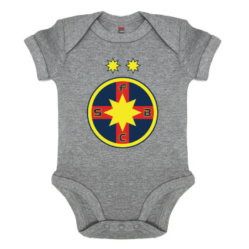 FC Steaua Bucuresti (FCSB), Βρεφικό φορμάκι μωρού, 0-18 μηνών, ΓΚΡΙ ΜΕΛΑΝΖΕ, 100% Organic Cotton, κοντομάνικο