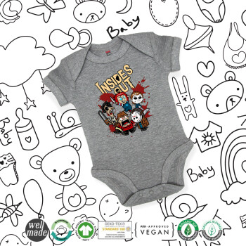 Halloween Inside out, Βρεφικό φορμάκι μωρού, 0-18 μηνών, ΓΚΡΙ ΜΕΛΑΝΖΕ, 100% Organic Cotton, κοντομάνικο