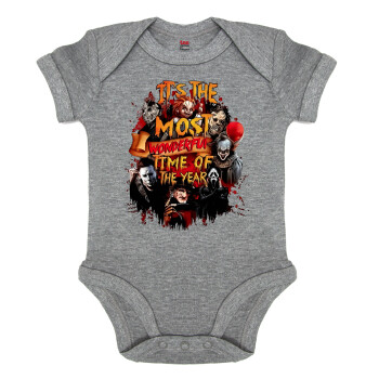 Halloween it's most wonderful time of the year, Βρεφικό φορμάκι μωρού, 0-18 μηνών, ΓΚΡΙ ΜΕΛΑΝΖΕ, 100% Organic Cotton, κοντομάνικο