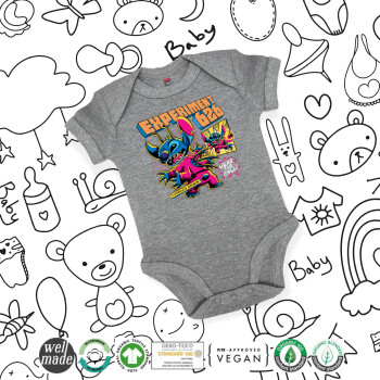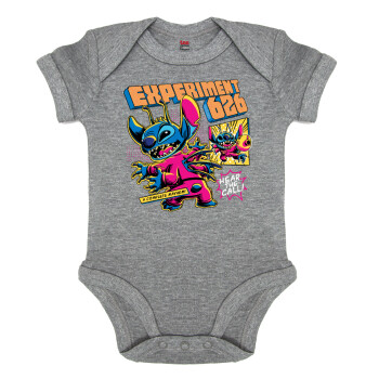 Stitch Experiment 626, Βρεφικό φορμάκι μωρού, 0-18 μηνών, ΓΚΡΙ ΜΕΛΑΝΖΕ, 100% Organic Cotton, κοντομάνικο