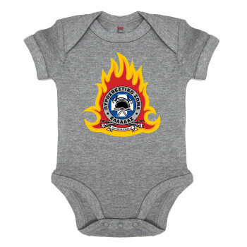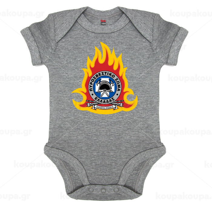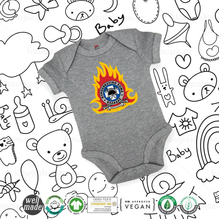 Πυροσβεστικό σώμα Ελλάδος σκούρο, Βρεφικό φορμάκι μωρού, 0-18 μηνών, ΓΚΡΙ ΜΕΛΑΝΖΕ, 100% Organic Cotton, κοντομάνικο