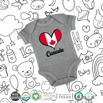 Canada flag, Βρεφικό φορμάκι μωρού, 0-18 μηνών, ΓΚΡΙ ΜΕΛΑΝΖΕ, 100% Organic Cotton, κοντομάνικο