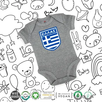 Hellas, Βρεφικό φορμάκι μωρού, 0-18 μηνών, ΓΚΡΙ ΜΕΛΑΝΖΕ, 100% Organic Cotton, κοντομάνικο