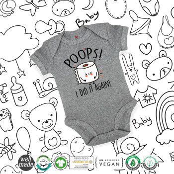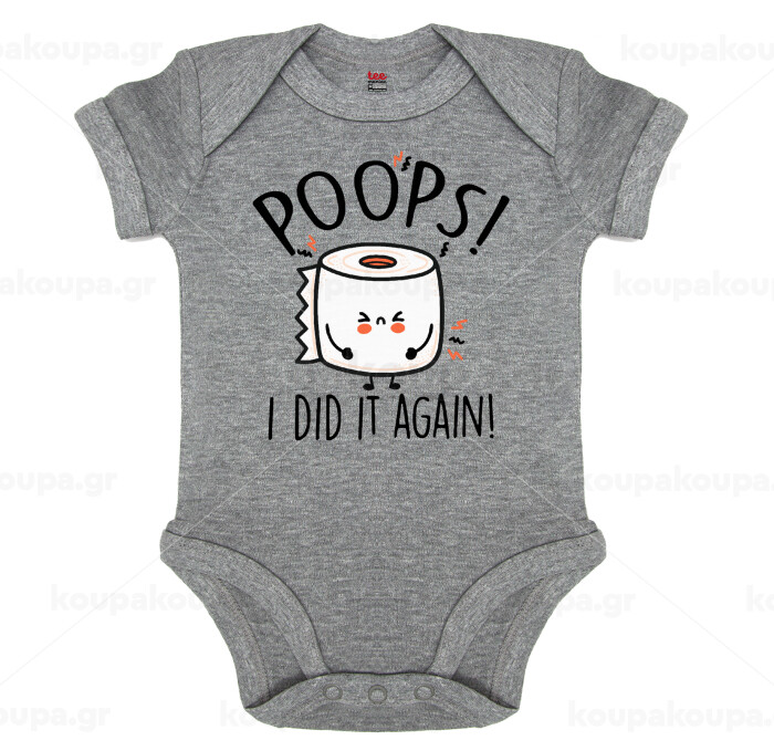 Poops!...I Did It Again, Βρεφικό φορμάκι μωρού, 0-18 μηνών, ΓΚΡΙ ΜΕΛΑΝΖΕ, 100% Organic Cotton, κοντομάνικο