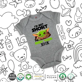 I'm not short, i'm Baby Yoda size, Βρεφικό φορμάκι μωρού, 0-18 μηνών, ΓΚΡΙ ΜΕΛΑΝΖΕ, 100% Organic Cotton, κοντομάνικο