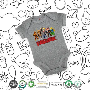 Roblox squad, Βρεφικό φορμάκι μωρού, 0-18 μηνών, ΓΚΡΙ ΜΕΛΑΝΖΕ, 100% Organic Cotton, κοντομάνικο