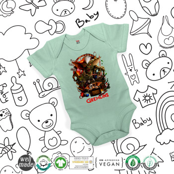 Gremlins, Βρεφικό φορμάκι μωρού, 0-18 μηνών, mint (Μέντα), 100% Organic Cotton, κοντομάνικο