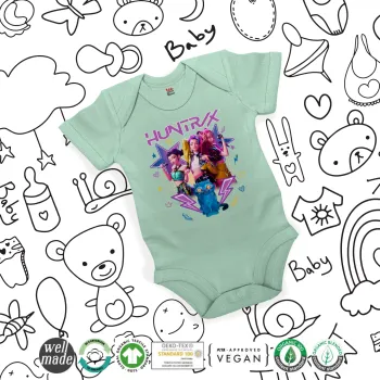 Huntrix K-pop series, Βρεφικό φορμάκι μωρού, 0-18 μηνών, mint (Μέντα), 100% Organic Cotton, κοντομάνικο