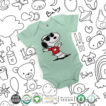 Snoopy καρδούλα, Βρεφικό φορμάκι μωρού, 0-18 μηνών, mint (Μέντα), 100% Organic Cotton, κοντομάνικο