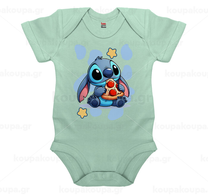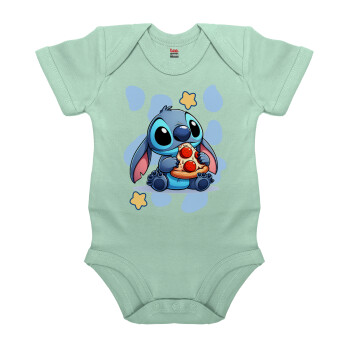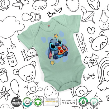 Stitch Pizza, Βρεφικό φορμάκι μωρού, 0-18 μηνών, mint (Μέντα), 100% Organic Cotton, κοντομάνικο