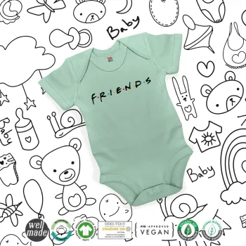 Friends, Βρεφικό φορμάκι μωρού, 0-18 μηνών, mint (Μέντα), 100% Organic Cotton, κοντομάνικο