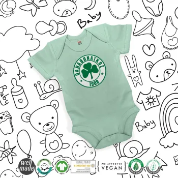 ΠΑΟ Παναθηναϊκός, Βρεφικό φορμάκι μωρού, 0-18 μηνών, mint (Μέντα), 100% Organic Cotton, κοντομάνικο