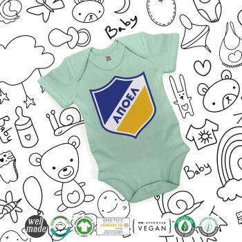 FC ΑΠΟΕΛ Λευκωσίας, Βρεφικό φορμάκι μωρού, 0-18 μηνών, mint (Μέντα), 100% Organic Cotton, κοντομάνικο