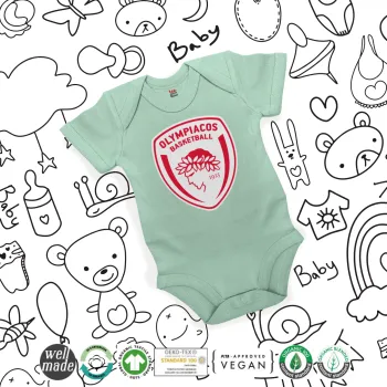 Olympiacos B.C., Βρεφικό φορμάκι μωρού, 0-18 μηνών, mint (Μέντα), 100% Organic Cotton, κοντομάνικο