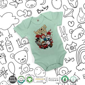 Halloween Inside out, Βρεφικό φορμάκι μωρού, 0-18 μηνών, mint (Μέντα), 100% Organic Cotton, κοντομάνικο