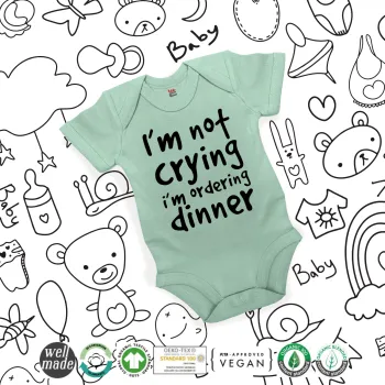 I'm Not Crying I'm Ordering Dinner, Βρεφικό φορμάκι μωρού, 0-18 μηνών, mint (Μέντα), 100% Organic Cotton, κοντομάνικο