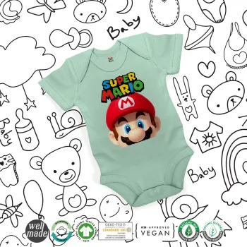 Super mario, Βρεφικό φορμάκι μωρού, 0-18 μηνών, mint (Μέντα), 100% Organic Cotton, κοντομάνικο