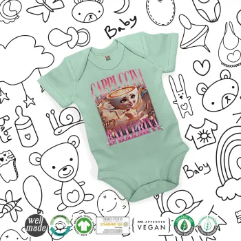 BALLERINA CAPUCHINA FUNK, Βρεφικό φορμάκι μωρού, 0-18 μηνών, mint (Μέντα), 100% Organic Cotton, κοντομάνικο