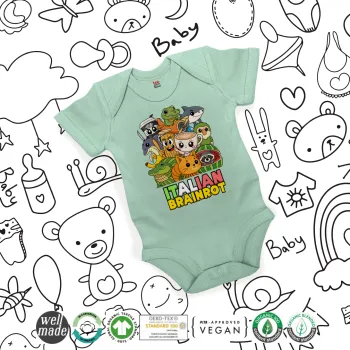 Italian Brainrot friends, Βρεφικό φορμάκι μωρού, 0-18 μηνών, mint (Μέντα), 100% Organic Cotton, κοντομάνικο