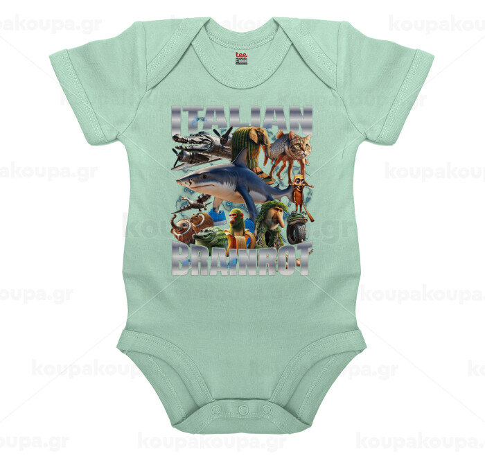 Italian Brainrot, Βρεφικό φορμάκι μωρού, 0-18 μηνών, mint (Μέντα), 100% Organic Cotton, κοντομάνικο