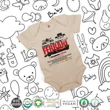 F1 Ferrari, Βρεφικό φορμάκι μωρού, 0-18 μηνών, Natural (Εκρού), 100% Organic Cotton, κοντομάνικο
