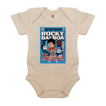 Rocky Balboa, Βρεφικό φορμάκι μωρού, 0-18 μηνών, Natural (Εκρού), 100% Organic Cotton, κοντομάνικο