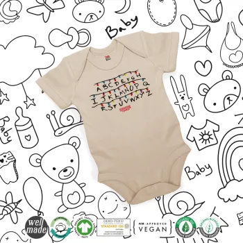 Stranger Things ABC, Βρεφικό φορμάκι μωρού, 0-18 μηνών, Natural (Εκρού), 100% Organic Cotton, κοντομάνικο