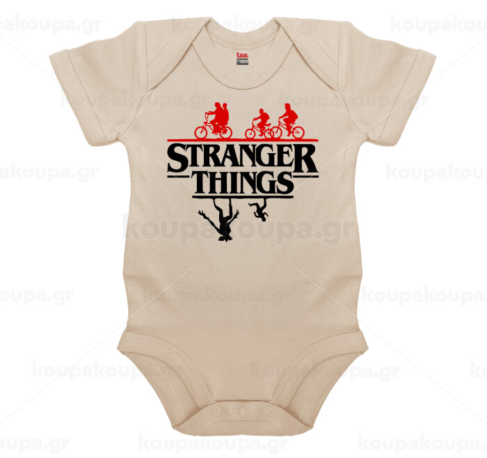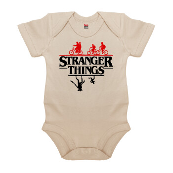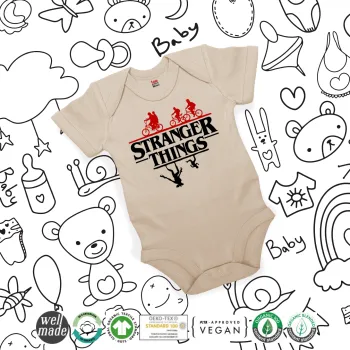 Stranger Things upside down, Βρεφικό φορμάκι μωρού, 0-18 μηνών, Natural (Εκρού), 100% Organic Cotton, κοντομάνικο