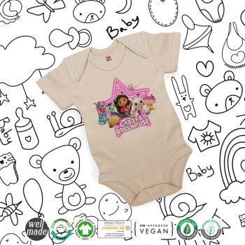 Gabby Dollhouse, Βρεφικό φορμάκι μωρού, 0-18 μηνών, Natural (Εκρού), 100% Organic Cotton, κοντομάνικο