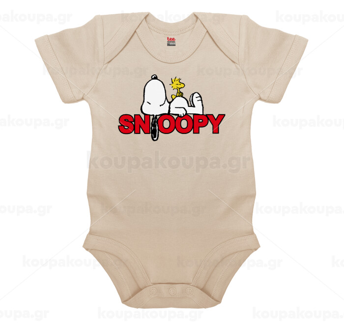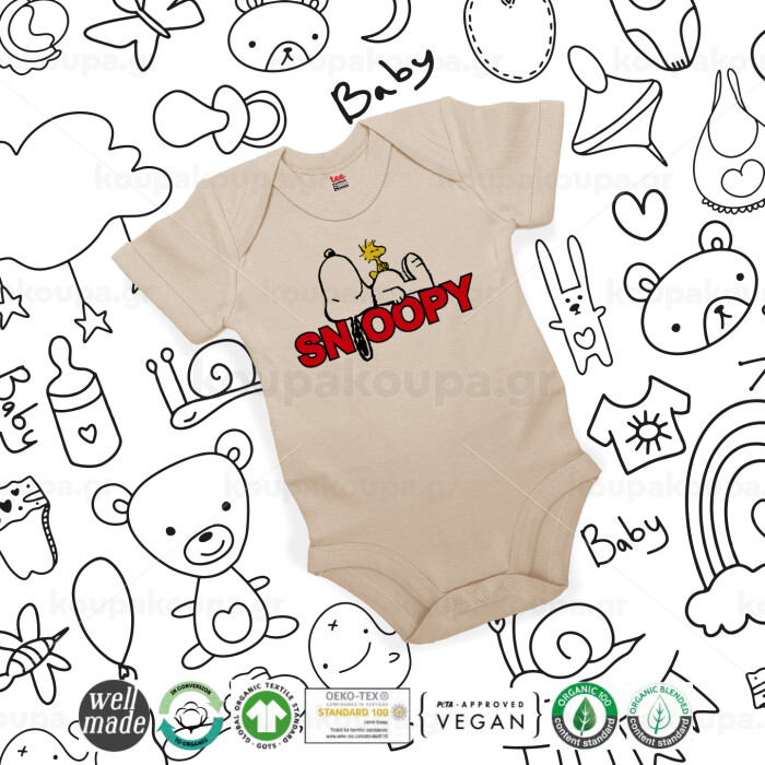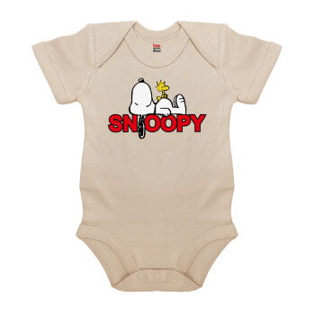 Snoopy sleep, Βρεφικό φορμάκι μωρού, 0-18 μηνών, Natural (Εκρού), 100% Organic Cotton, κοντομάνικο