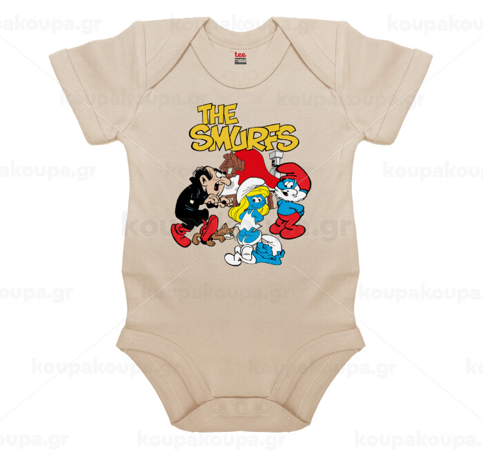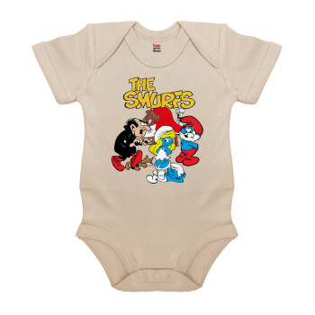 The smurfs, Βρεφικό φορμάκι μωρού, 0-18 μηνών, Natural (Εκρού), 100% Organic Cotton, κοντομάνικο