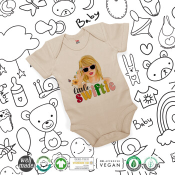Little Swiftie, Βρεφικό φορμάκι μωρού, 0-18 μηνών, Natural (Εκρού), 100% Organic Cotton, κοντομάνικο