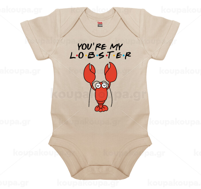 Friends you're my lobster, Βρεφικό φορμάκι μωρού, 0-18 μηνών, Natural (Εκρού), 100% Organic Cotton, κοντομάνικο