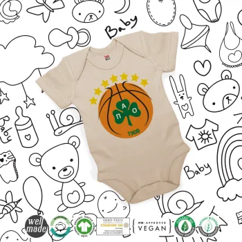 PAO BC, Βρεφικό φορμάκι μωρού, 0-18 μηνών, Natural (Εκρού), 100% Organic Cotton, κοντομάνικο