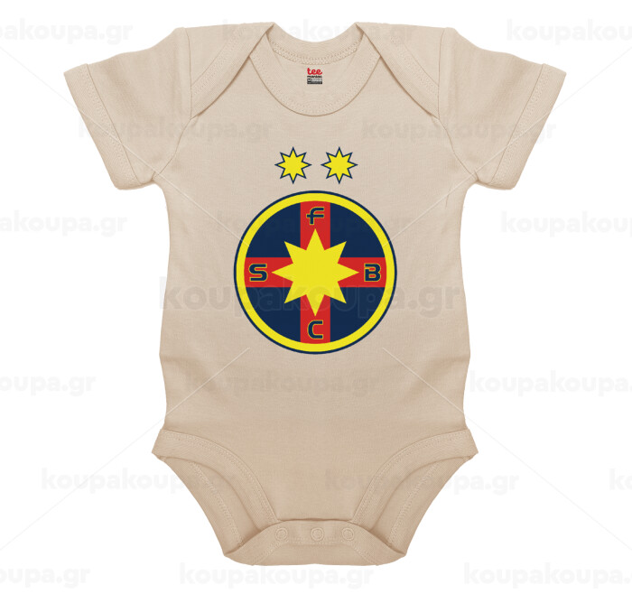 FC Steaua Bucuresti (FCSB), Βρεφικό φορμάκι μωρού, 0-18 μηνών, Natural (Εκρού), 100% Organic Cotton, κοντομάνικο