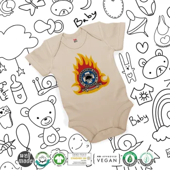 Πυροσβεστικό σώμα Ελλάδος σκούρο, Βρεφικό φορμάκι μωρού, 0-18 μηνών, Natural (Εκρού), 100% Organic Cotton, κοντομάνικο
