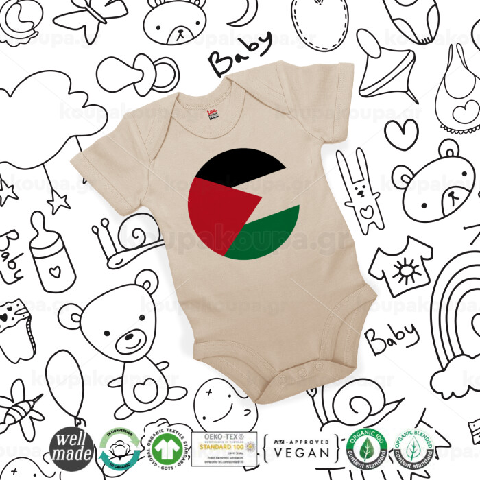 Palestine Flag, Βρεφικό φορμάκι μωρού, 0-18 μηνών, Natural (Εκρού), 100% Organic Cotton, κοντομάνικο