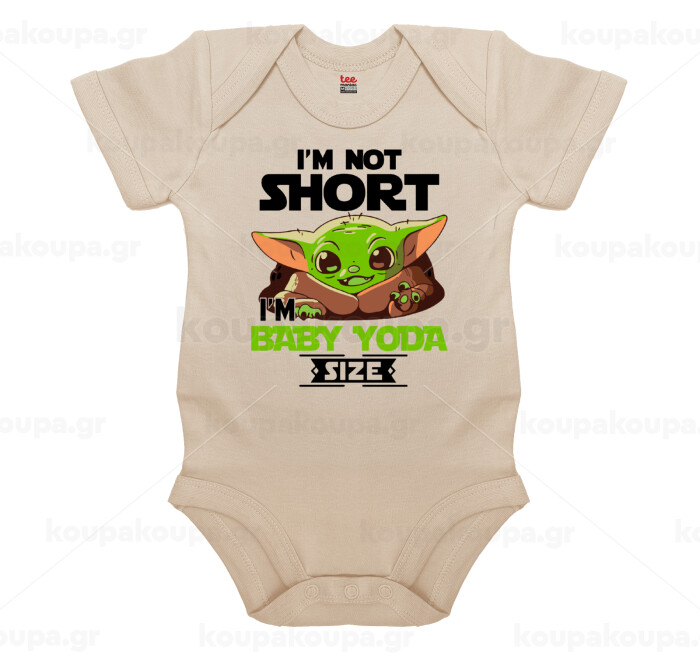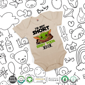 I'm not short, i'm Baby Yoda size, Βρεφικό φορμάκι μωρού, 0-18 μηνών, Natural (Εκρού), 100% Organic Cotton, κοντομάνικο