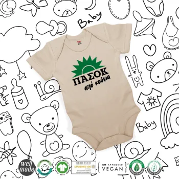 ΠΑΣΟΚ από κούνια, Βρεφικό φορμάκι μωρού, 0-18 μηνών, Natural (Εκρού), 100% Organic Cotton, κοντομάνικο