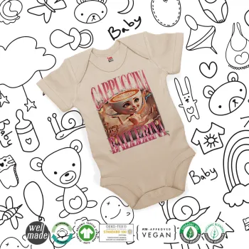 BALLERINA CAPUCHINA FUNK, Βρεφικό φορμάκι μωρού, 0-18 μηνών, Natural (Εκρού), 100% Organic Cotton, κοντομάνικο