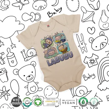 Labubu, Βρεφικό φορμάκι μωρού, 0-18 μηνών, Natural (Εκρού), 100% Organic Cotton, κοντομάνικο