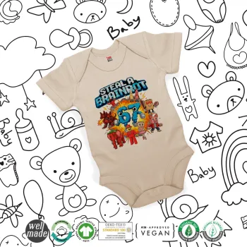 Steal a Brainrot 67 Roblox Style, Βρεφικό φορμάκι μωρού, 0-18 μηνών, Natural (Εκρού), 100% Organic Cotton, κοντομάνικο