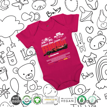 F1 Ferrari, Βρεφικό φορμάκι μωρού, 0-18 μηνών, ΡΟΖ, 100% Organic Cotton, κοντομάνικο