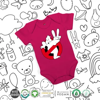 Ghostbusters, Βρεφικό φορμάκι μωρού, 0-18 μηνών, ΡΟΖ, 100% Organic Cotton, κοντομάνικο