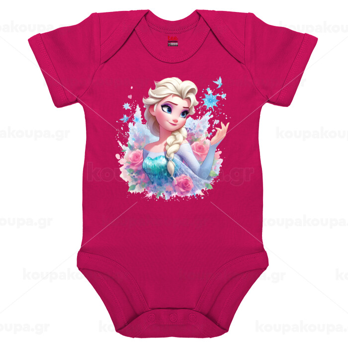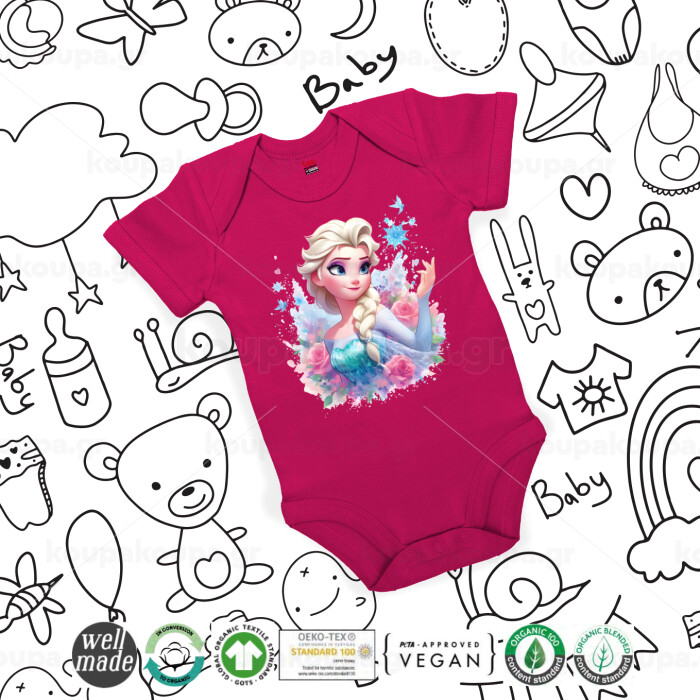 Elsa Princess, Βρεφικό φορμάκι μωρού, 0-18 μηνών, ΡΟΖ, 100% Organic Cotton, κοντομάνικο