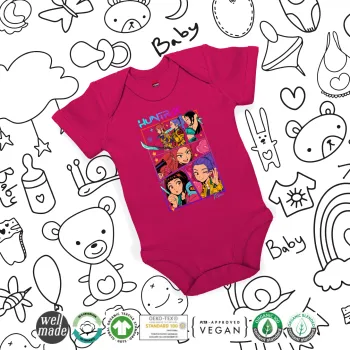 Huntrix Kpop Girls, Βρεφικό φορμάκι μωρού, 0-18 μηνών, ΡΟΖ, 100% Organic Cotton, κοντομάνικο