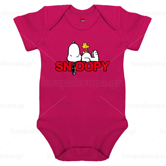 Snoopy sleep, Βρεφικό φορμάκι μωρού, 0-18 μηνών, ΡΟΖ, 100% Organic Cotton, κοντομάνικο