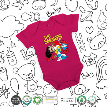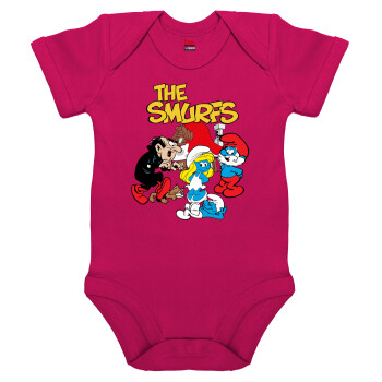 The smurfs, Βρεφικό φορμάκι μωρού, 0-18 μηνών, ΡΟΖ, 100% Organic Cotton, κοντομάνικο