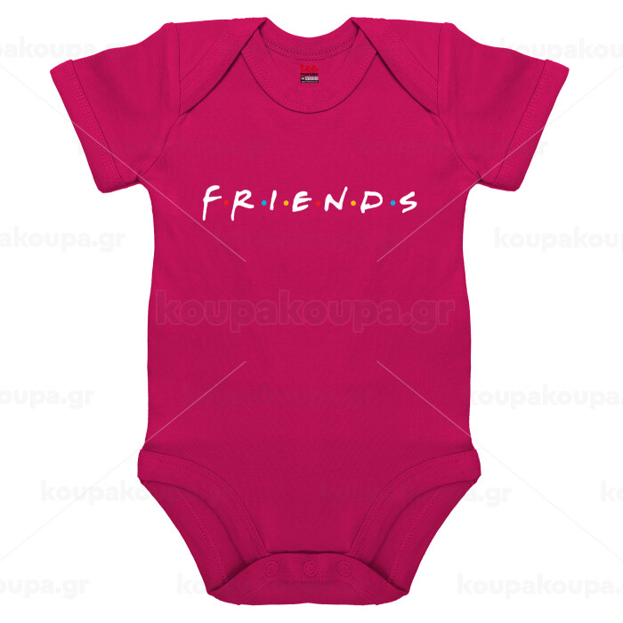 Friends, Βρεφικό φορμάκι μωρού, 0-18 μηνών, ΡΟΖ, 100% Organic Cotton, κοντομάνικο